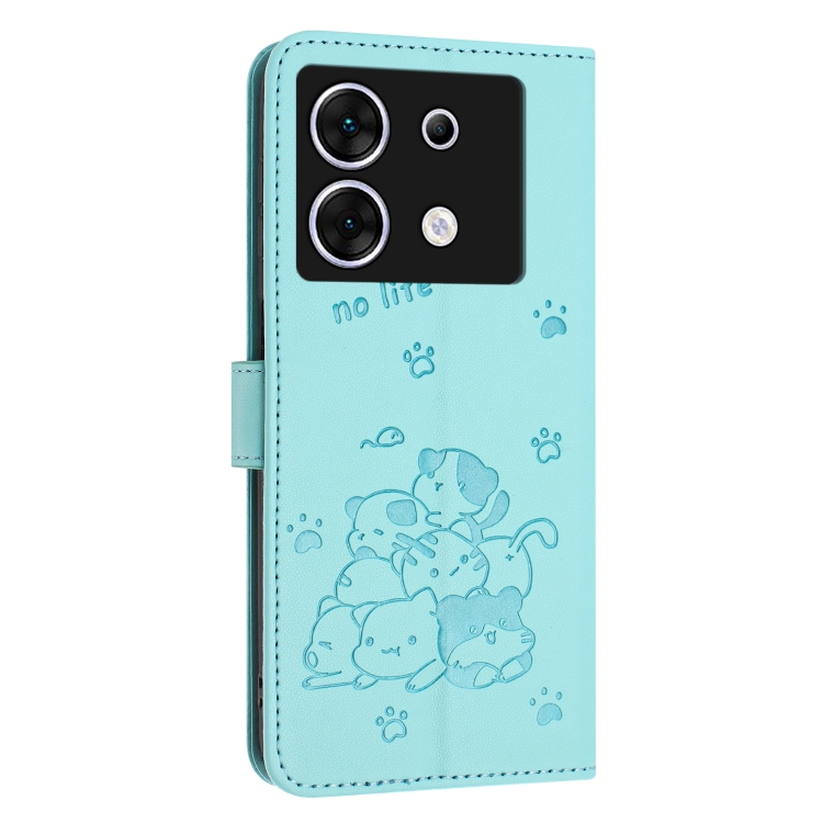 Funda de Cuero Infinix Zero 30 5G con Diseño de Gatito En Relieve y Cordón (Verde Menta)