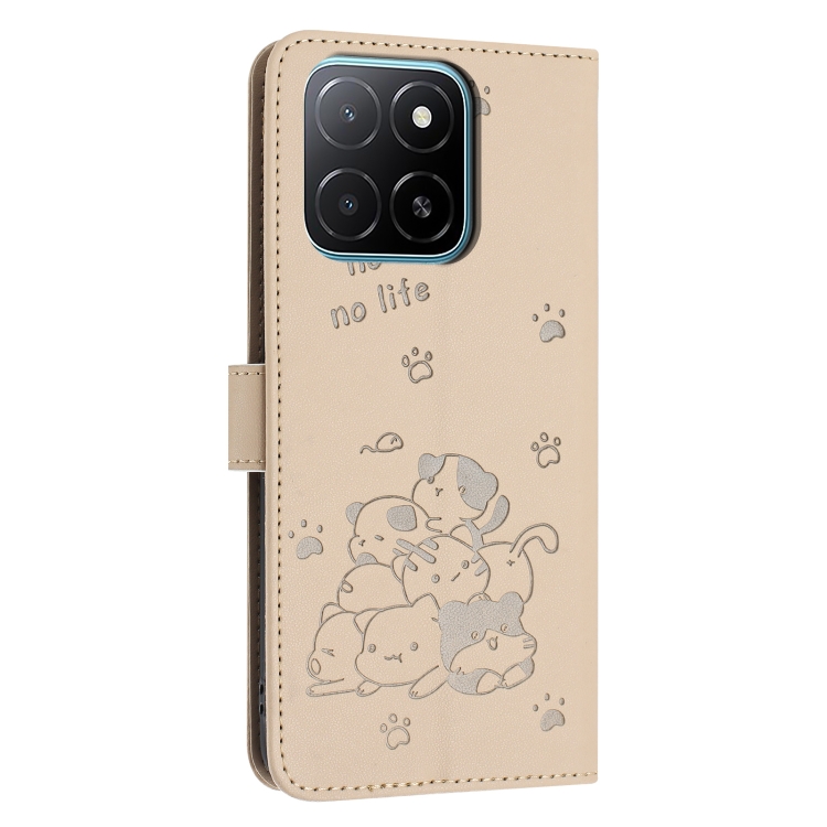 Funda de Piel Honor X5B X5B Plus con Diseño de Gatito en Relieve y Cordón (Beige)