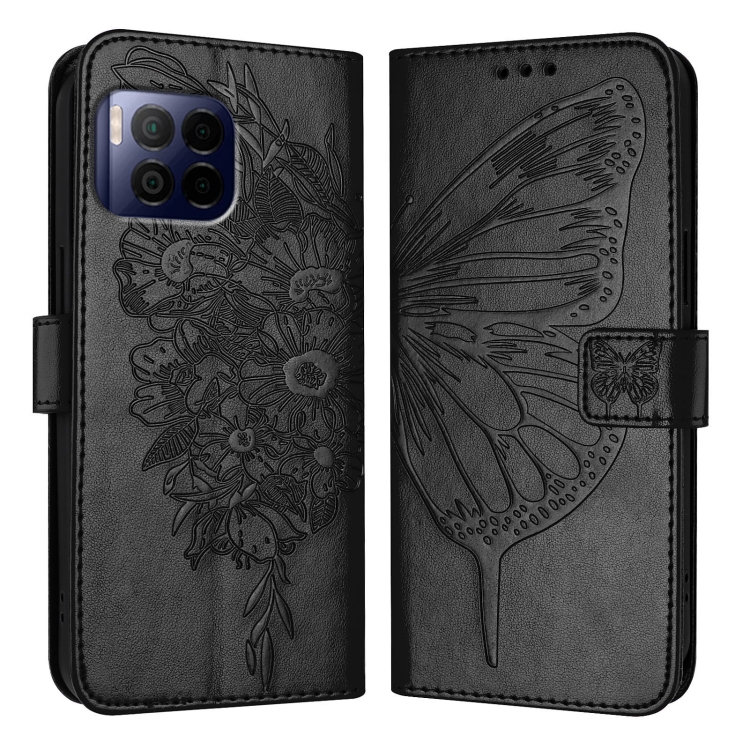 Funda de Cuero para T-Mobile Revvl 7 Pro 5G con Diseño de Mariposa En Relieve (Negra)