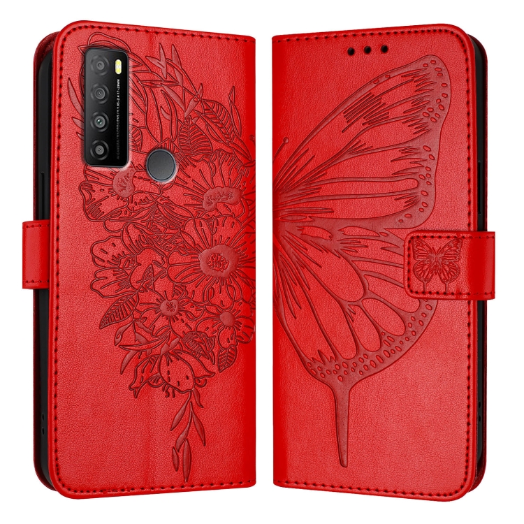 Funda de Cuero para TCL 30 Xl T701Dl con Diseño de Mariposa en Relieve (Rojo)