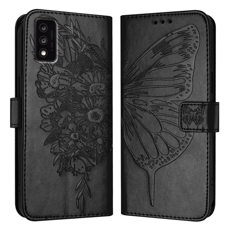 Funda de Cuero para TCL 30T T603Dl con Diseño de Mariposa en Relieve (Negra)