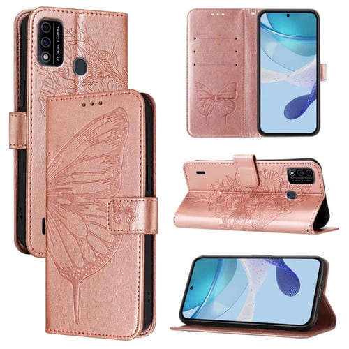 Funda de Cuero para Teléfono Itel A48 con Diseño de Mariposa en Relieve (Oro Rosa)