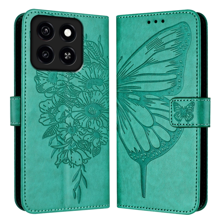 Funda de Cuero para ZTE Blade A35/A55 con Diseño de Mariposa en Relieve (Verde)