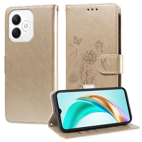 Funda de Cuero Honor X60I con Diseño de Mariposas y Flores en Relieve (Dorada)