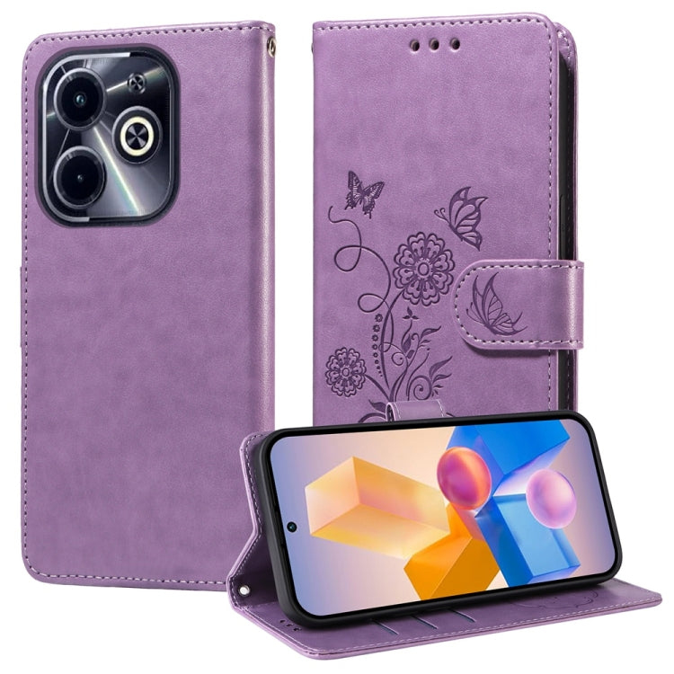 Funda de Cuero para Infinix Hot 40I con Diseño de Mariposas y Flores en Relieve (Morado)