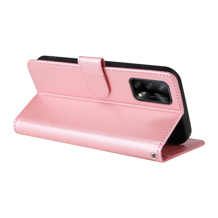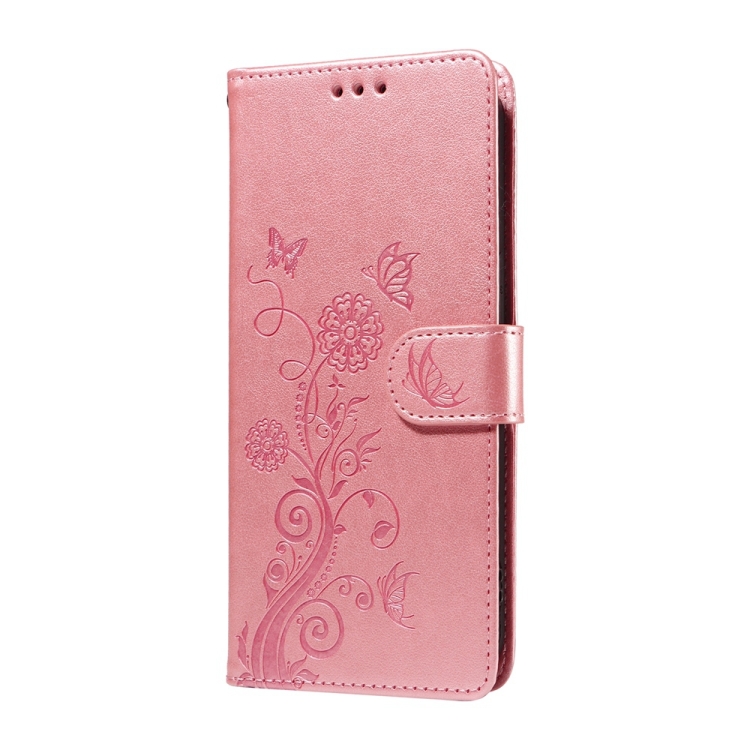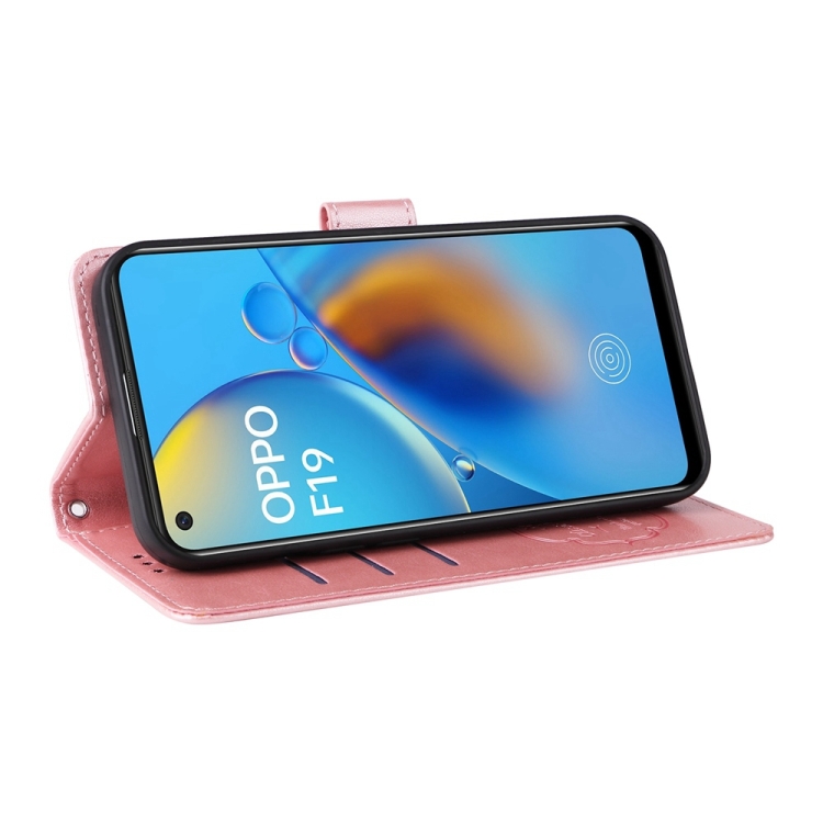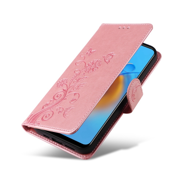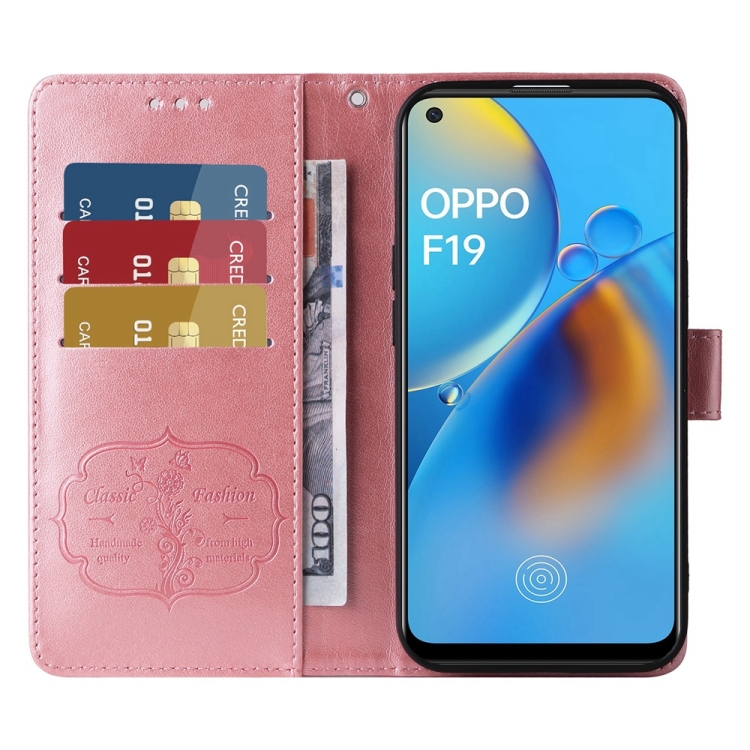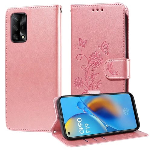 Funda de Cuero con Diseño de Mariposas y Flores En Relieve para Oppo A74 4G / F19 4G / F19S / A95 4G (Oro Rosa)