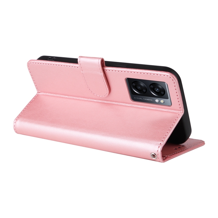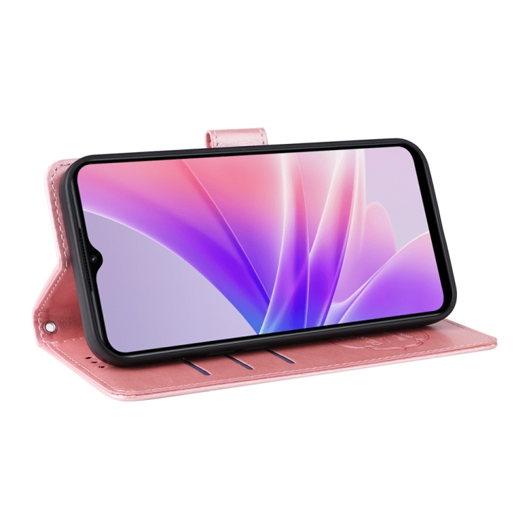 Funda de Cuero con Diseño de Mariposas y Flores En Relieve para Oppo A77 4G/5G/A77S 4G (Oro Rosa)