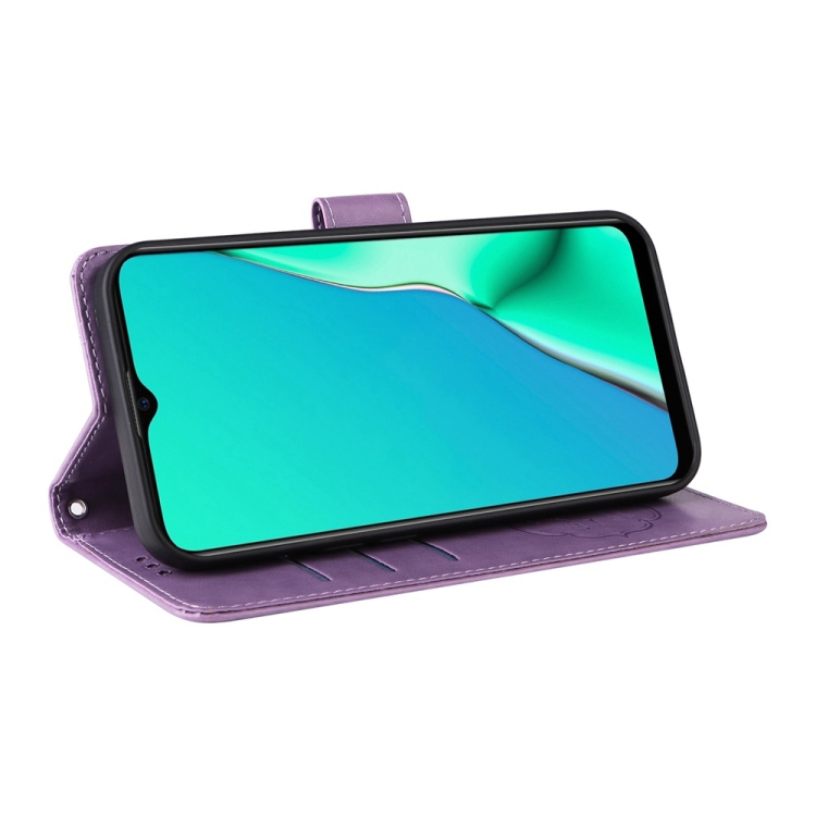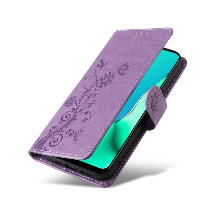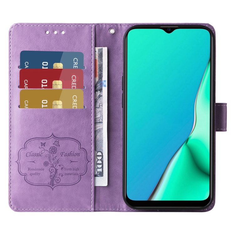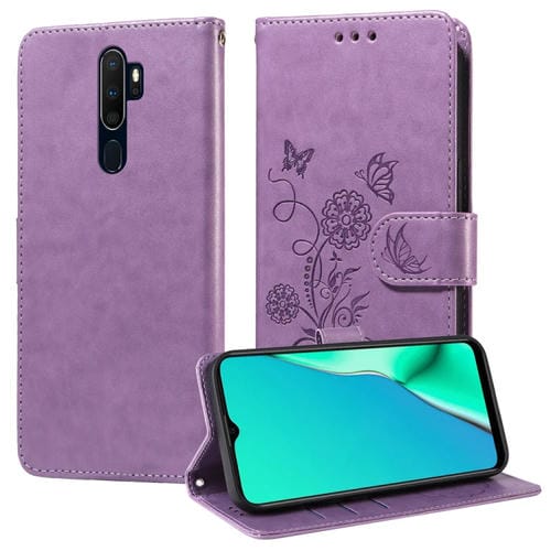 Funda de Cuero con Diseño de Mariposas y Flores En Relieve para Oppo A9 2020/A11X/A5 2020/A11 (Morado)