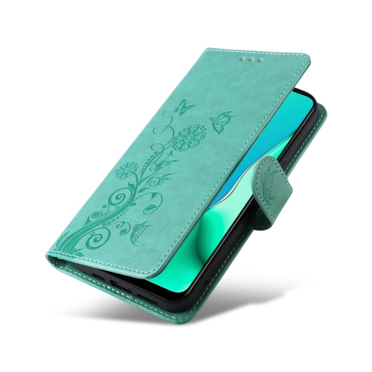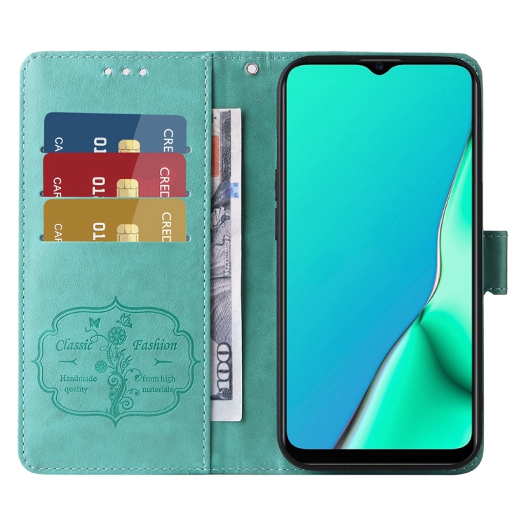 Funda de Cuero con Diseño de Mariposas y Flores En Relieve para Oppo A9 2020/A11X/A5 2020/A11 (Verde)