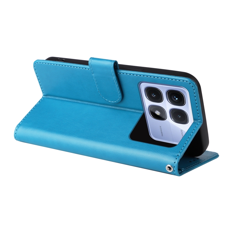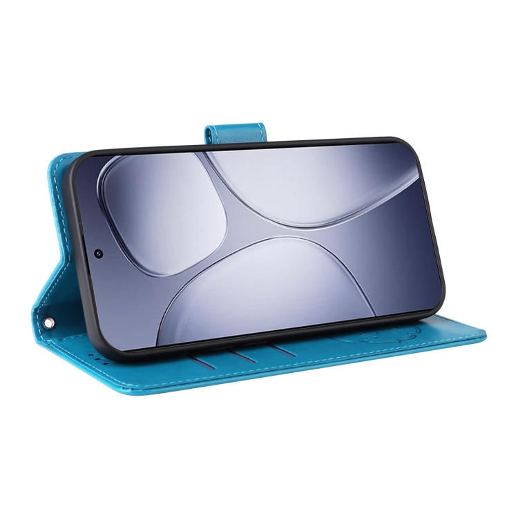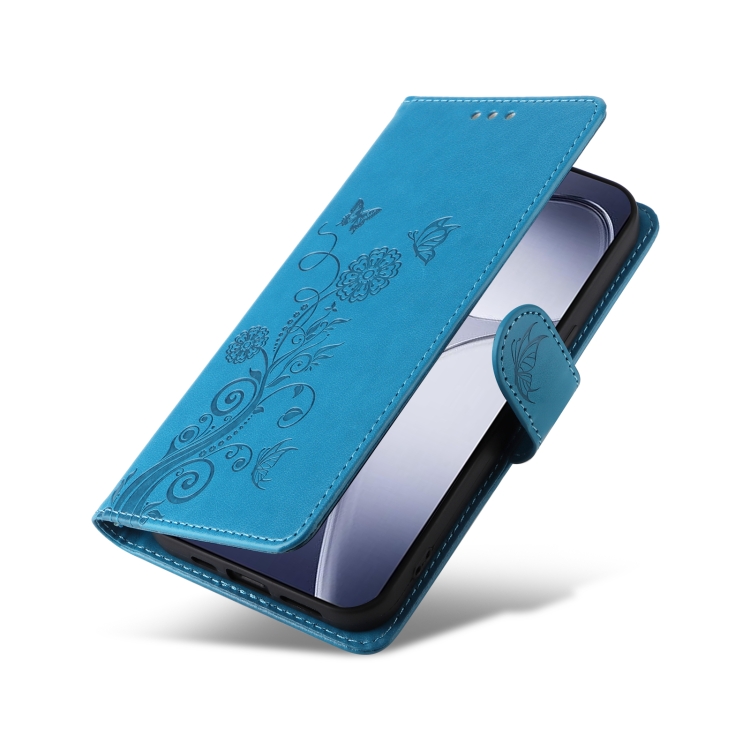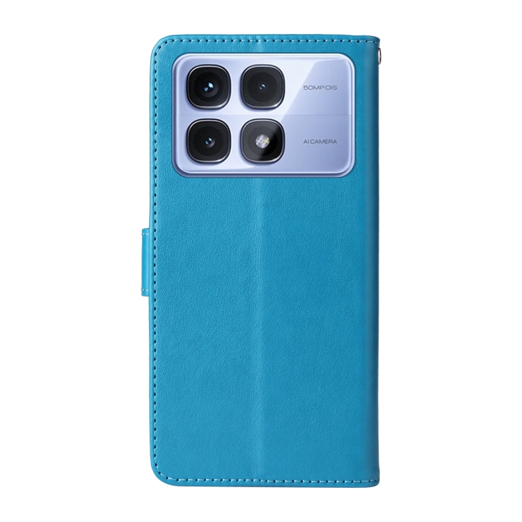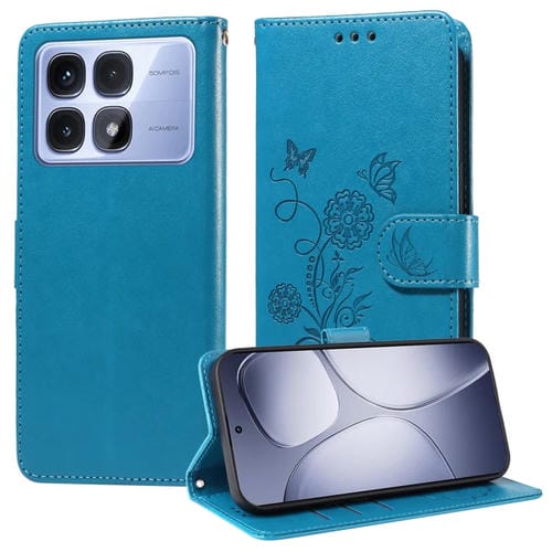 Funda de Cuero con Diseño de Mariposas y Flores En Relieve para Redmi K70 Ultra (Azul)