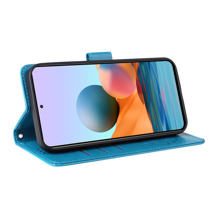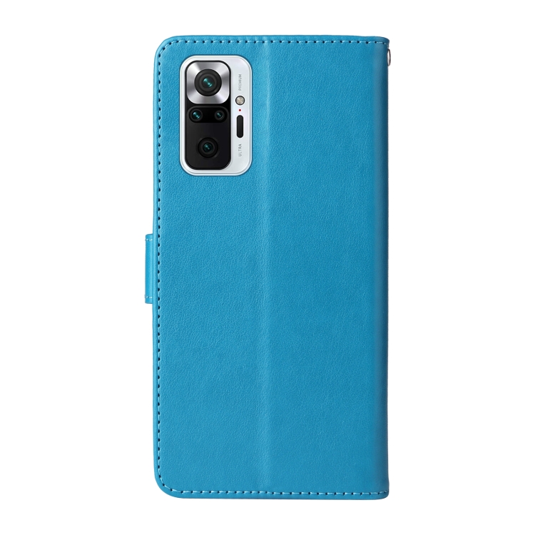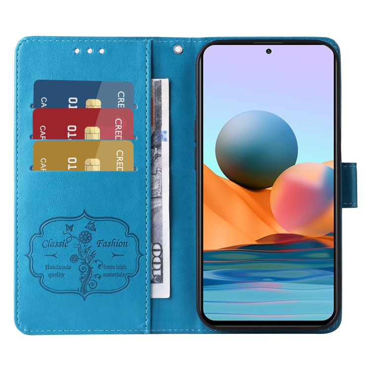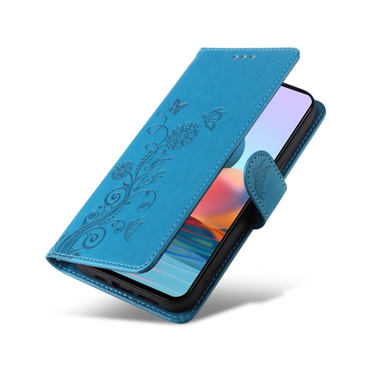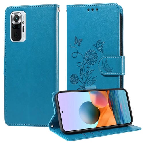 Funda de Cuero con Diseño de Mariposas y Flores En Relieve para Redmi Note 10 Pro 4G/Note 10 Pro Max (Azul)