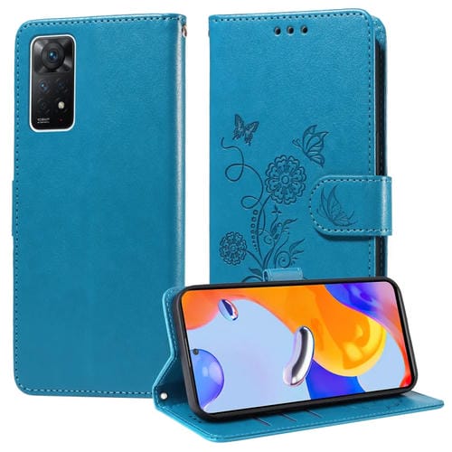 Funda de Cuero con Diseño de Mariposas y Flores En Relieve para Redmi Note 11 Pro 5G/4G (Azul)