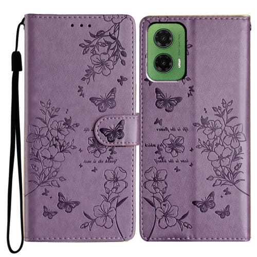 Funda de Cuero para Motorola Moto G35 con Mariposas y Flores (Morado)