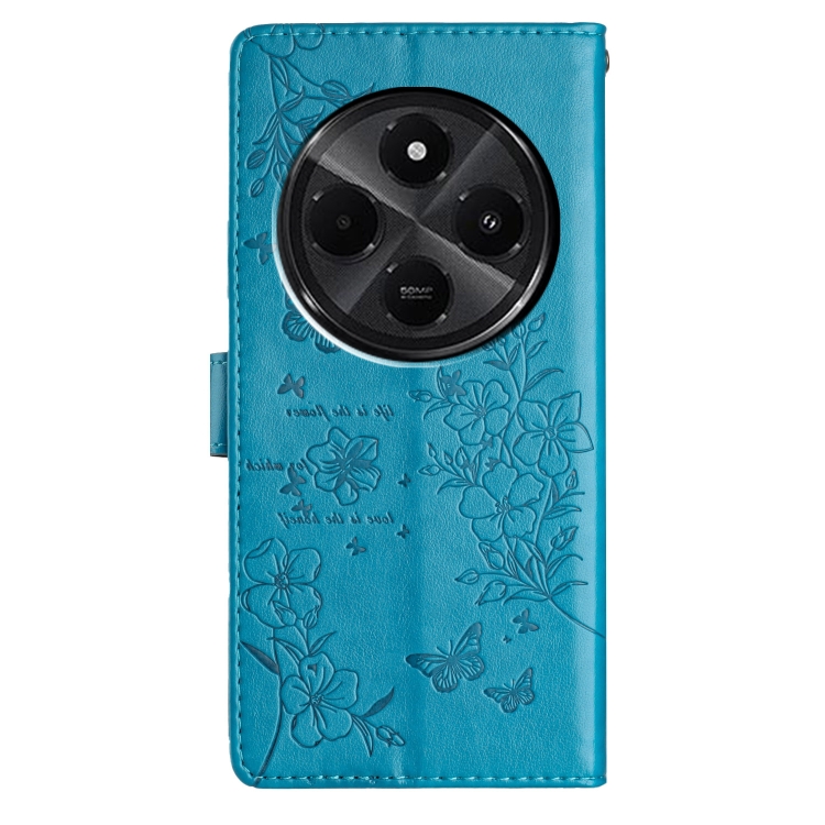 Funda de Cuero con Mariposas y Flores para Redmi A4 5G (Azul)