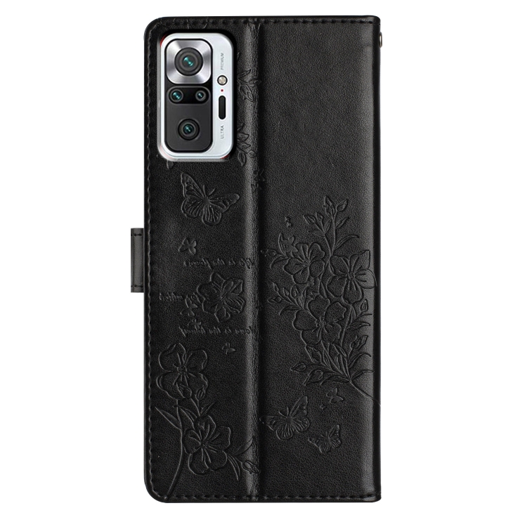 Funda de Cuero con Diseño de Mariposas y Flores para Redmi Note 10 Pro Max (Negra)