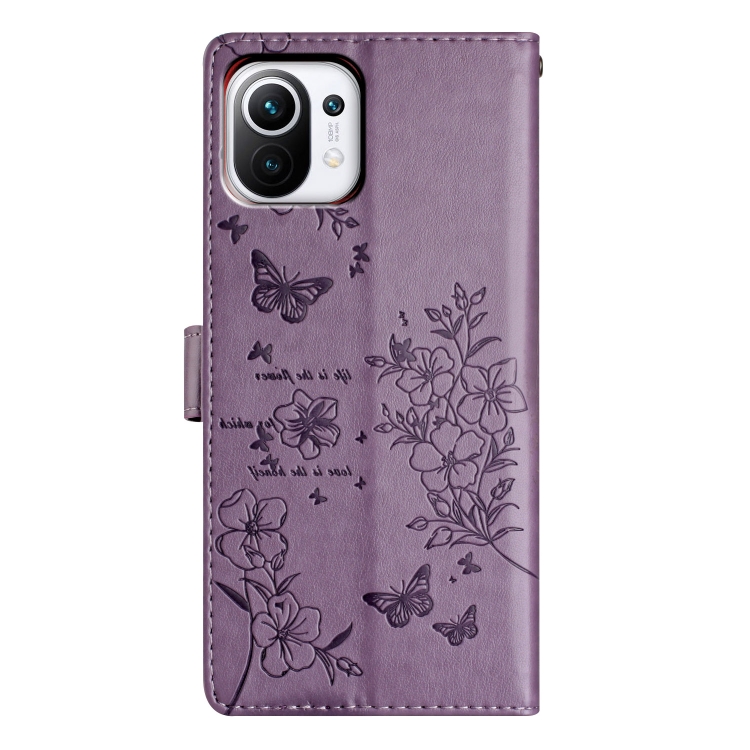 Funda de Cuero con Diseño de Mariposas y Flores para Xiaomi Mi 11 Lite (Morado)