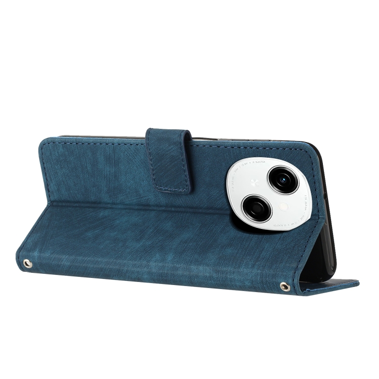 Funda de Cuero para Tecno Spark Go 1 con Diseño de Rayas y Tacto Agradable (Azul)