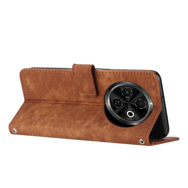 Funda de Cuero para Tecno Spark 30C con Diseño de Rayas y Tacto Sedoso (Marrón)