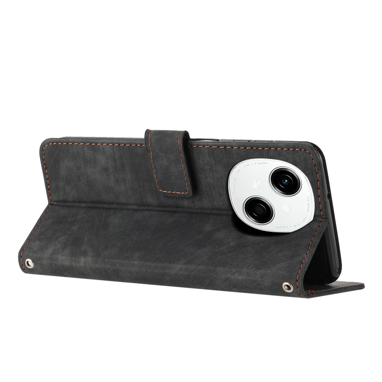 Funda de Cuero para Tecno Spark Go 1 con Diseño de Rayas y Tacto Sedoso (Negra)