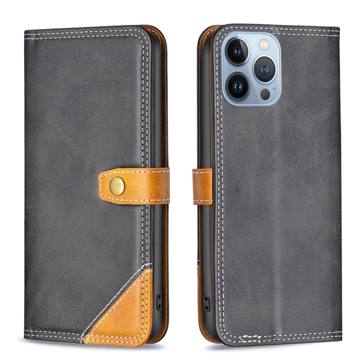 Funda de Cuero para iPhone 13 Pro con Doble Hilo de Coser (Negro)