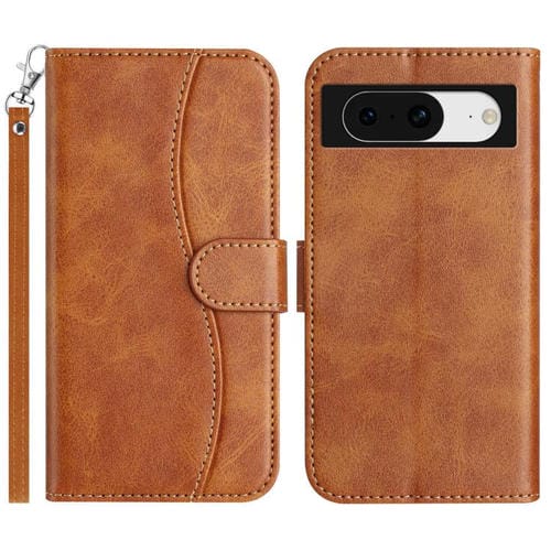 Funda de Cuero con Doble Pliegue en Forma de S para Google Pixel 8 (Marrón)