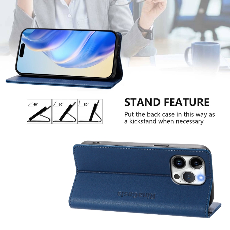 Funda de Cuero Rc01 para iPhone 14 Pro Max con Doble Pliegue y Succión Magnética (Azul Oscuro)