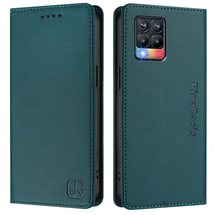 Funda de Cuero con Doble Pliegue y Succión Magnética para Realme 8 4G/8 Pro 4G Rc01 (Verde Oscuro)