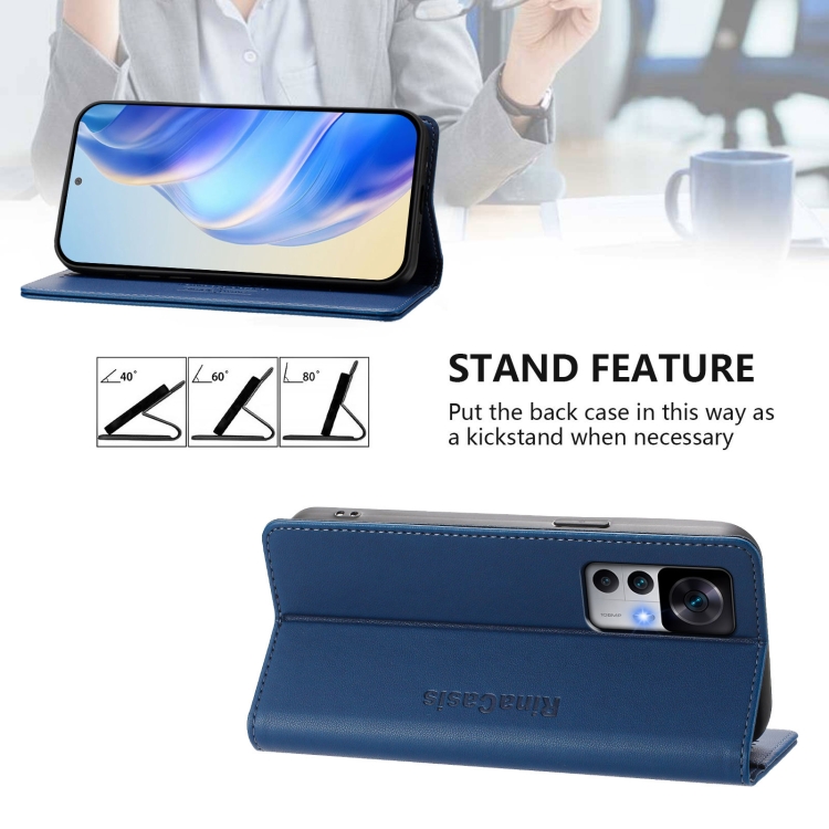 Funda de Cuero con Doble Pliegue y Succión Magnética para Redmi K50 Ultra / Xiaomi 12T / 12T Pro Rc01 (Azul Oscuro)