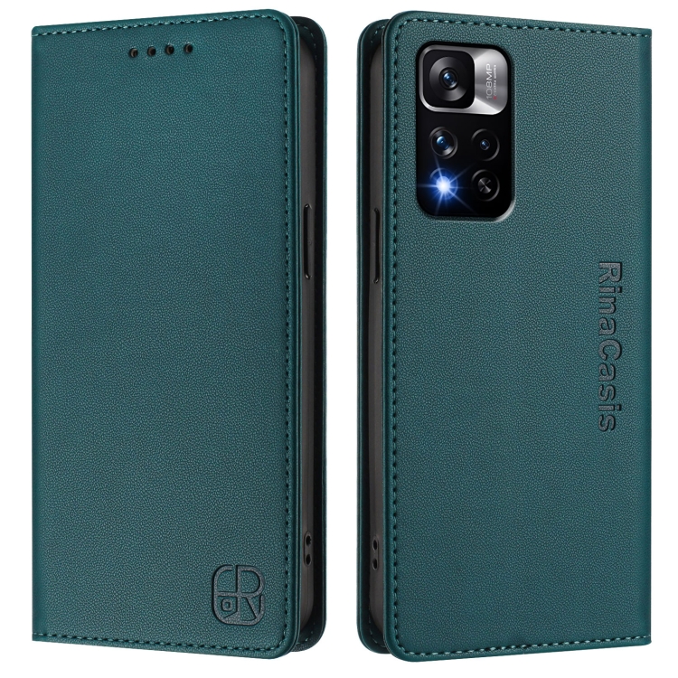 Funda de Cuero con Doble Pliegue y Succión Magnética para Redmi Note 11 Pro+ 5G, Modelo Europeo Rc01 (Verde Oscuro)