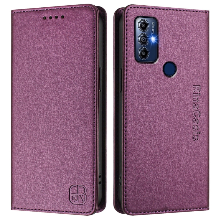 Funda de Cuero Motorola G Pure Moto G Play 2023 Rc01 con Doble Pliegue y Succión Magnética (Violeta)