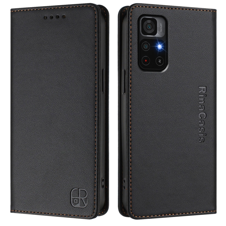 Funda de Cuero con Doble Pliegue y Succión Magnética para Teléfono Redmi Note 11S 5G/Xiaomi Poco M4 Pro 5G Rc01 (Negro)