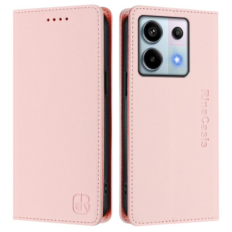 Funda de Cuero con Doble Pliegue y Succión Magnética para Teléfono Xiaomi Poco X6 5G/Redmi Note 13 Pro 5G Rc01 (Rosa)