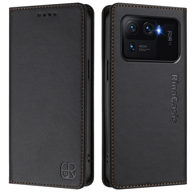 Funda de Cuero con Doble Pliegue y Succión Magnética para Xiaomi Mi 11 Ultra Rc01 (Negra)