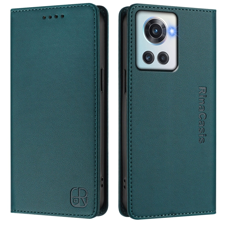 Funda de Cuero con Doble Pliegue y Succión Magnética Rfid para OnePlus 10R OnePlus Ace Rc01 (Verde Oscuro)