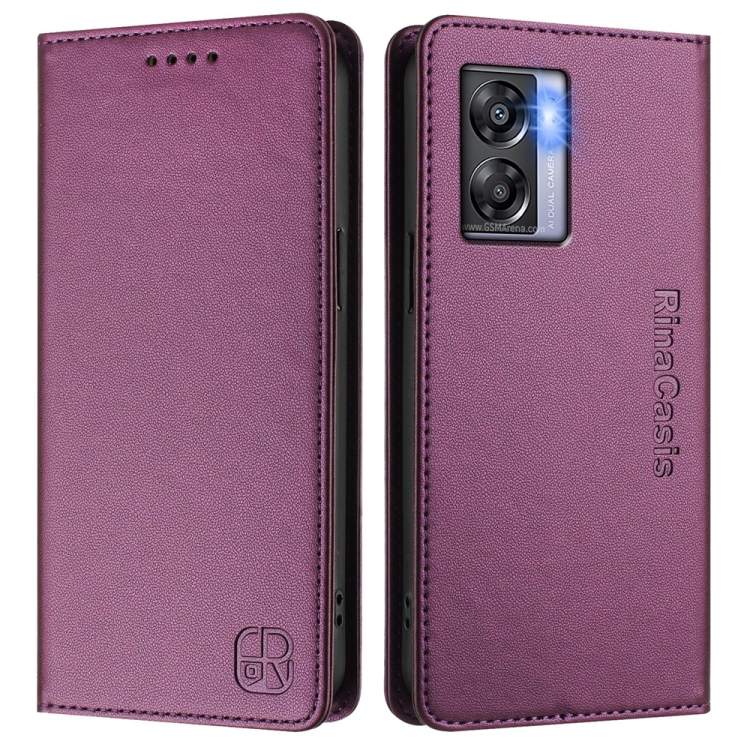 Funda de Cuero con Doble Pliegue y Succión Magnética RFID para OnePlus Nord N300 Rc01 (Violeta)