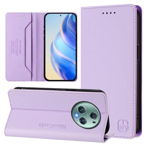 Funda de Cuero Rfid con Doble Pliegue y Succión Magnética para Honor Magic5 Pro Rc01 (Morado Claro)