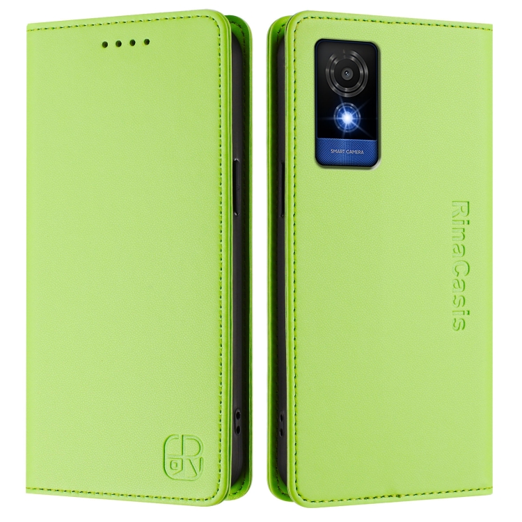 Funda Cuero Doble Pliegue Succión Magnética Rfid para TCL 501 Rc01 (Verde Hierba)