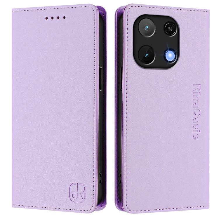 Funda de Cuero con Doble Pliegue y Succión Magnética RFID para Umidigi Note 90 Rc01 (Morado Claro)