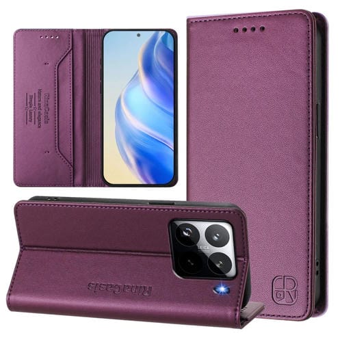 Funda De Cuero Con Doble Pliegue Y Succión Magnética Rfid Para Xiaomi 15 Pro Rc01 (Violeta)