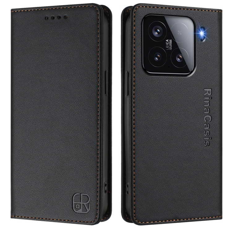 Funda De Cuero Con Doble Pliegue Y Succión Magnética Rfid Para Xiaomi 15 Rc01 (Negra)
