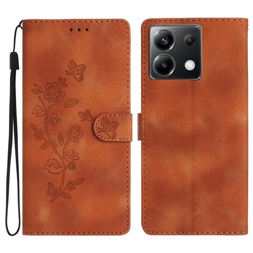 Funda de Cuero con Estampado de Flores y Mariposas para Xiaomi Poco X6 (Marrón)