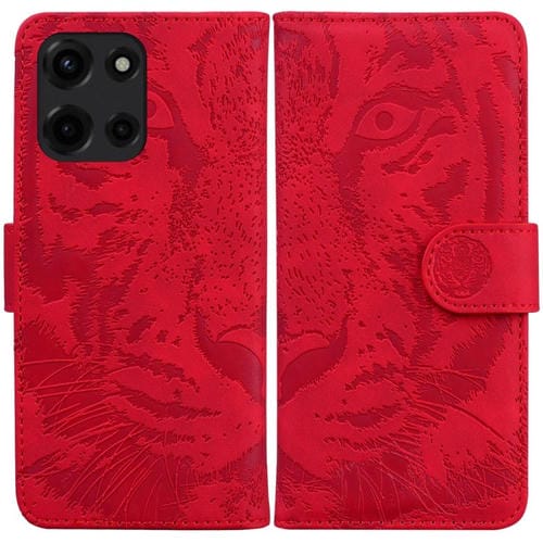 Funda de Cuero Motorola Moto G 5G (2025) con Estampado de Tigre (Rojo)