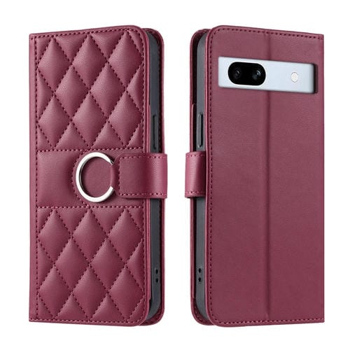 Funda de Cuero con Forma de Rombo y Hebilla de Anillo para Google Pixel 7A (Rojo)