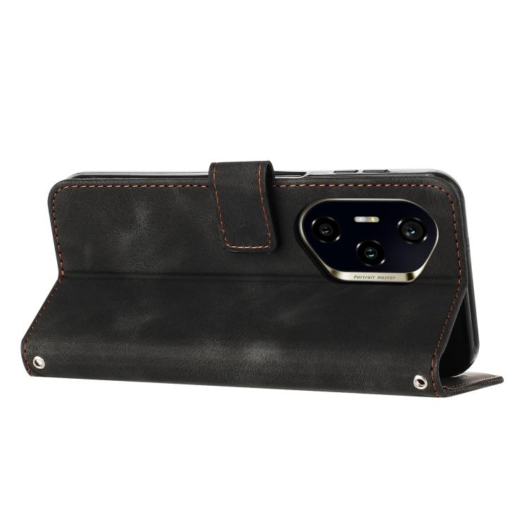 Funda de Cuero Triángulo con Cordón para Honor 300 Pro y 300 Ultra (Negro)