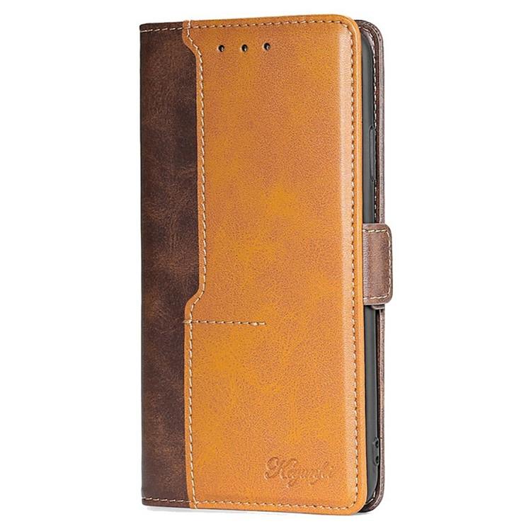 Funda de cuero con hebilla lateral en color de contraste para iPhone 17 (marrón oscuro y dorado)