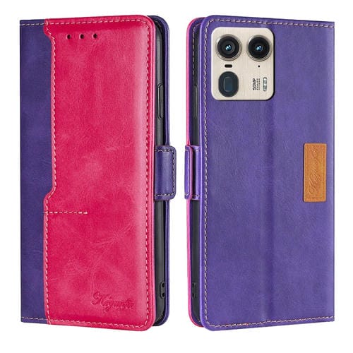 Funda de Cuero con Hebilla Lateral para Motorola Edge 50 Ultra (Morado + Rojo Rosa)