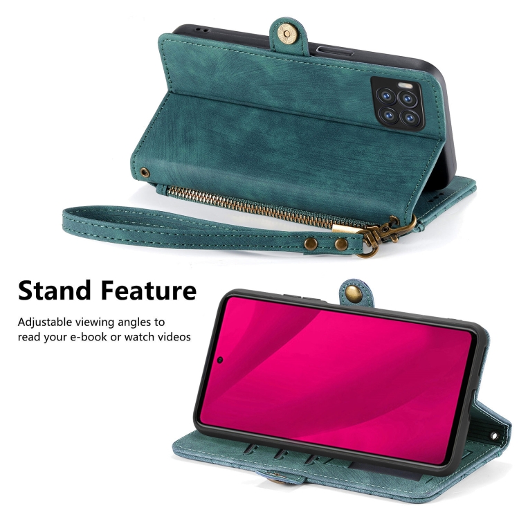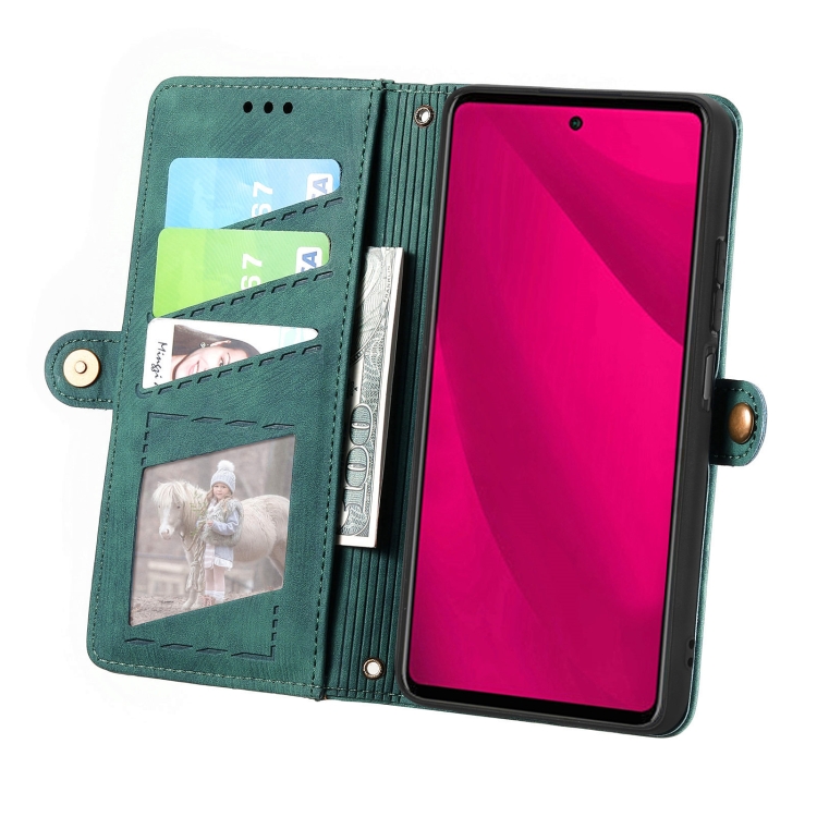 Funda de Cuero para T-Mobile Revvl 7 Pro 5G con Hebilla Lateral y Cierre Geométrico (Verde)