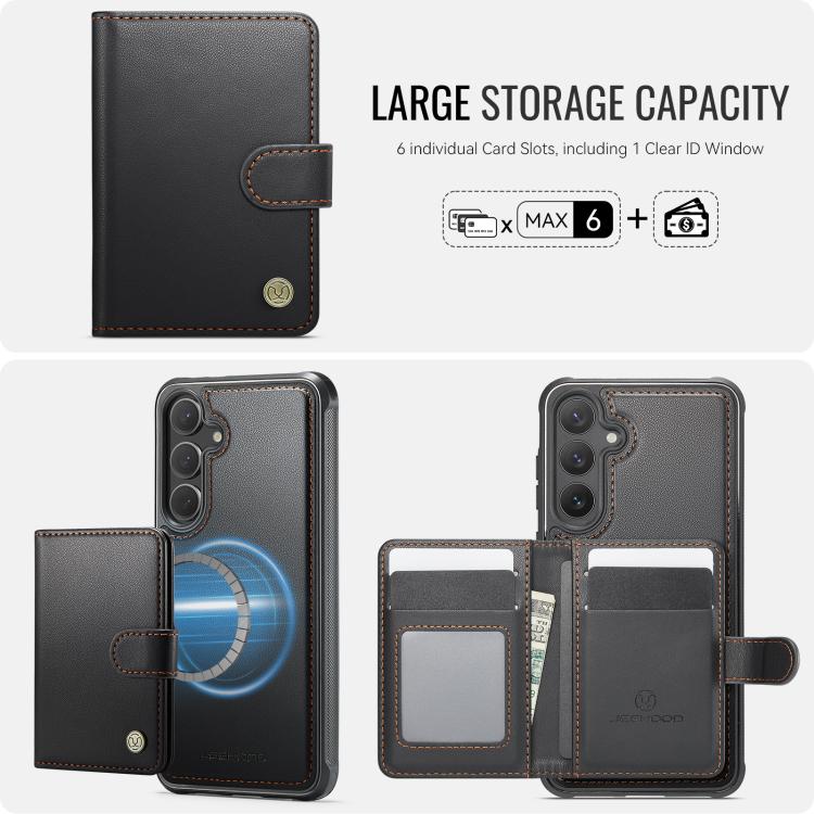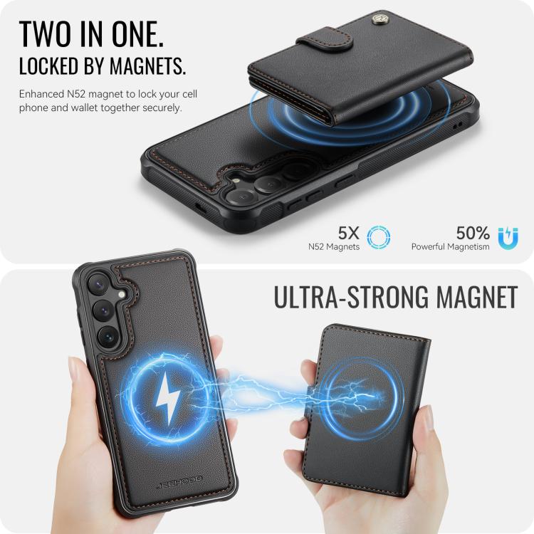 Funda de cuero con hebilla magnética para Samsung Galaxy S24 5G JEEHOOD J09, con ranuras para tarjetas, estilo RFID y MagSafe (negro)