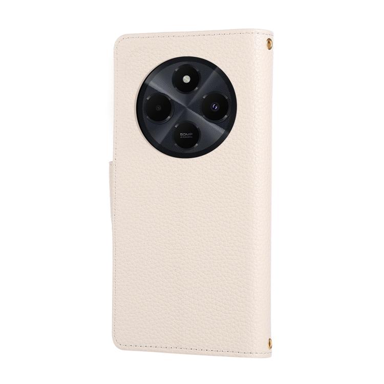 Funda de cuero con hebilla redonda y cremallera para Redmi 14C 5G, con correa cruzada (blanca)