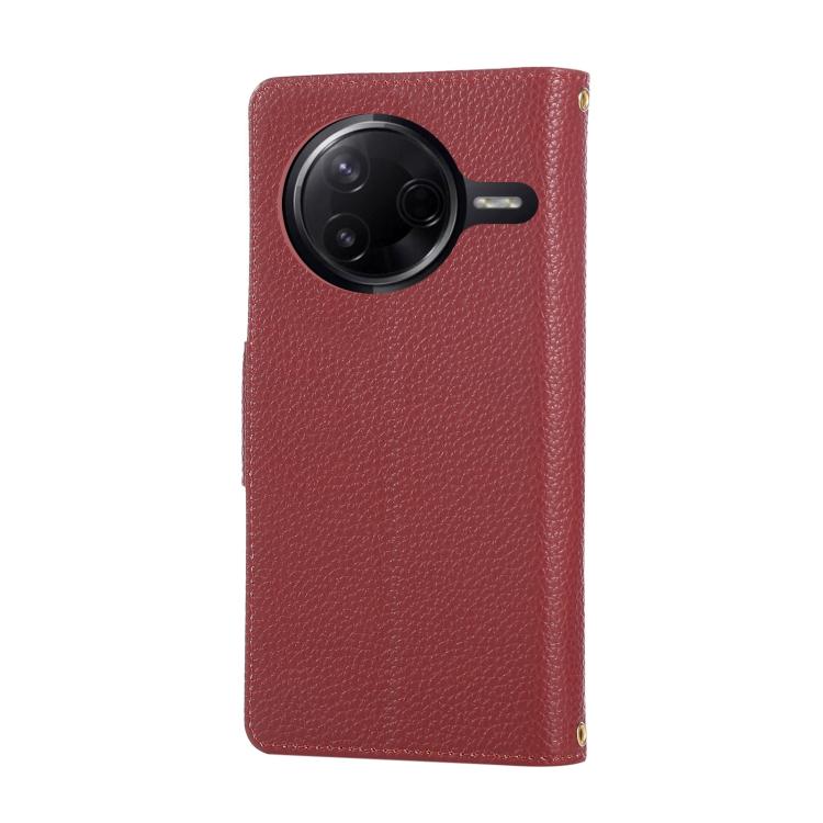 Funda de cuero con hebilla redonda y cremallera para Redmi K80/Poco F7 Pro, con correa cruzada (roja)